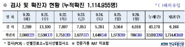 경북도내, 9월 26일 0시 기준 코로나19 확진자 786명(국내 770, 국외 16) 발생