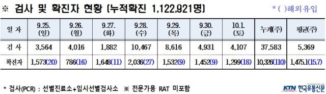 (전국= KTN) 김도형 기자= 경상북도에서는 10월 1일(토) 0시 기준 22개 시·군(시 10, 군 12)에서 코로나19 확진자 국내감염 1,281명, 국외감염 18명이 신규 발생하였다.