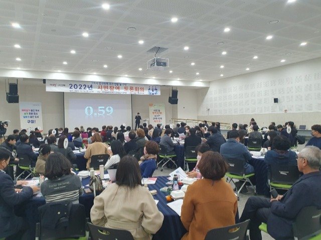 (경북= KTN) 전옥선 기자= 구미시(시장 김장호)에서는 2022. 12. 16.(금) 14시 새마을운동테마공원 글로벌관 다목적홀에서 시민 100여명이 참석한 가운데 ‘구미시 인구정책 추진 방향 및 전략’ 이라는 주제를 가지고 『2022년 시민참여 토론회의』를 개최했다.