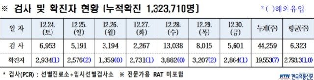 경북도내, 12월 30일 0시 기준 코로나19 확진자 2, 864명(국내 2, 863, 국외 1) 발생