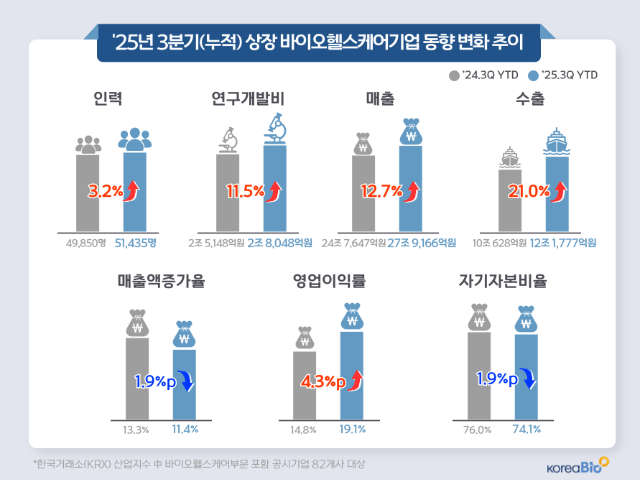 ▲ ‘25년 3분기 누적 상장 바이오헬스케어기업 동향조사 결과