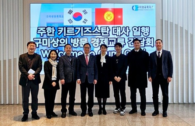 (전국= KTN) 김도형 기자= 구미상공회의소(회장:윤재호)는 12월 28일(목) 15:00, 구미상공회의소 3층 회의실에서 김달호 사무국장을 비롯한 상의 관계자, 아이다 주한 키르키즈 대사, 에디벡 아마토브 대사관 담당관, 아나라 볼루셰바 통역관 등 대사 일행, 조근숙 구미시 국제통상팀장 외 구미시 관계자 등이 참석한 가운데 “주한 키르키즈 대사 구미상공회의소 방문행사”를 개최하였다.