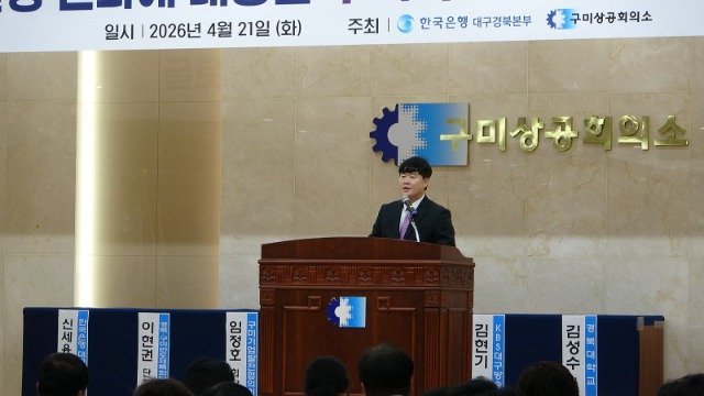 [한국유통신문=김도형 기자] 21일 구미상공회의소에서 열린 '2026 구미 지역발전 세미나' 축사에서 정성현 구미시장 권한대행은 글로벌 경제 위기 속 기업 지원과 AI 데이터시티 비전을 강조했다.