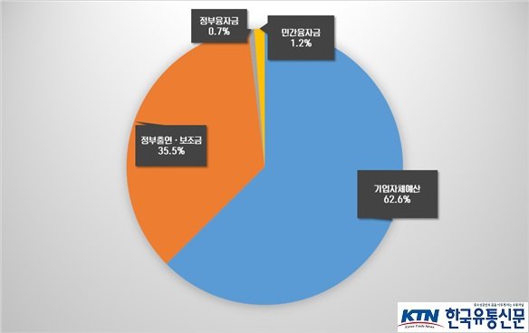 한편, 응답 기업들은 전체 매출액 대비 연구개발비로 평균 8.8%를 지출하고 있는 것으로 나타났고, 연구개발비 확보하는 방법으로 ‘기업자체예산’이 62.6%로 가장 많았으며, 이어 ‘정부출연·보조금’(35.5%), ‘민간 융자금’(1.2%), ‘정부 융자금’(0.7%) 순으로 응답하였다.
