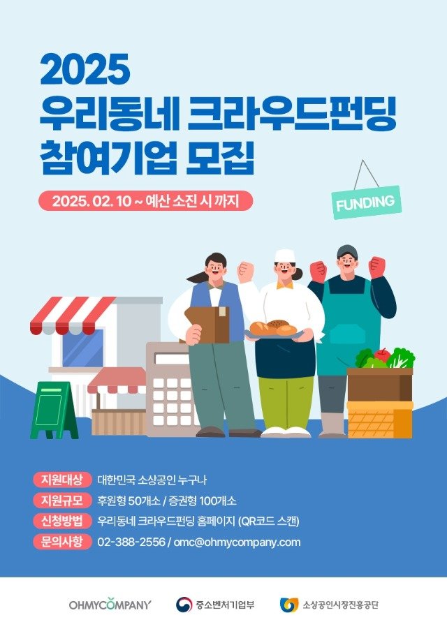 ‘소상공인 86억 펀딩 신화, 올해도 이어간다’…2025 우리동네 크라우드펀딩 지원사업 참여기업 모집