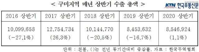2020년 상반기 구미지역 수출액 85억 47백만불! 전년대비 1.1% 증가