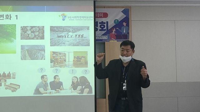 이날 사단법인 사회적경제허브센터 박명배 대표의 '사회적경제의 이해' 강연과 한대규 사무국장의 '사회적경제기업 지원제도 및 신청절차 교육'이 진행되어 참여 교육생들의 사회적경제기업에 대한 주요 핵심사안에 대해 맥락을 짚어줬다.
