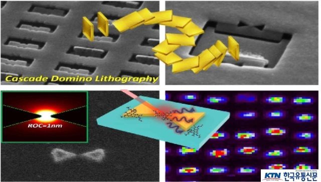 연구진은 이러한 난제를 해결하기 위해 도미노 놀이에서 영감을 얻어 새로운 방식의 연속 도미노 리소그래피 기술을 개발했고, 이를 통해 기존 전자빔 리소그래피에서 제약받는 해상도를 원자수준으로 뾰족하게 만들어 나비넥타이 형태의 나노안테나를 개발하는데 성공했다.