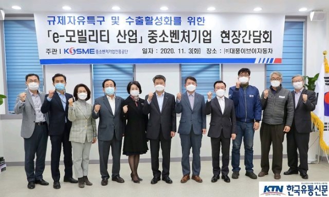 (전국= KTN) 김도형 기자= 중소벤처기업진흥공단(이사장 김학도, 이하 중진공)은 11월 03일(화) 오전 전남 영광에 소재한 ㈜대풍이브이자동차에서 e-모빌리티 분야 중소벤처기업 및 영광군, 지역 유관기관과의 현장 간담회를 가졌다고 밝혔다.