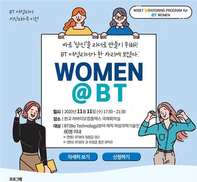 WISET, 11/11(수) 여성 재직자 멘토링 WOMEN@BT 개최