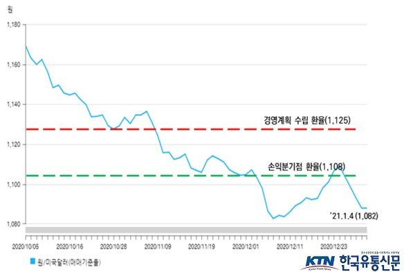 2021년 경영계획 수립 환율 달러당 1,125원, 손익분기점 환율 1,108원