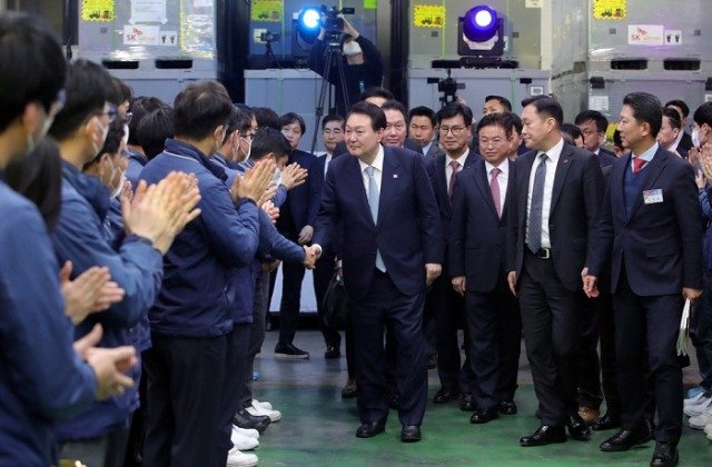 (전국= KTN) 김도형 기자= 구미시(시장 김장호)는 2023. 2. 1.(수) SK실트론 본사에서 윤석열 대통령, 이창양 산업통상자원부 장관, 한화진 환경부 장관, 경상북도 이철우 지사, SK그룹 최태원 회장, SK실트론 장용호 사장, 지역 국회의원 등이 참석한 가운데 SK실트론 300mm 웨이퍼 분야 투자양해각서(MOU)를 체결한 후 고순도 공업용수 실증플랜트 사업 현장을 답사하였다.
