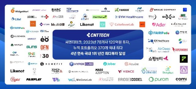 씨엔티테크, 2023년 78개사 120억원 투자… 투적 포트폴리오 370개로 국내 최대