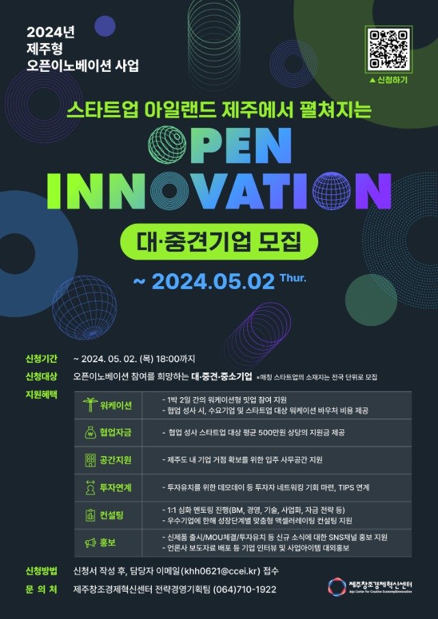 제주창조경제혁신센터, 제주형 오픈이노베이션 참여 대·중견기업 모집