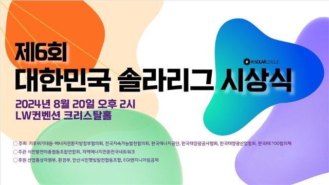 대한민국 솔라리그는 지방정부와 민간 부문에서 태양광 발전 보급 성과를 평가하는 대회로, 지자체보급성과부문, 지자체정책성과부문, 민간부문, 공공부문으로 나뉘어 진행됐다. 이번 대회의 시상식은 오는 8월 20일 서울 중구 LW컨벤션센터에서 열린다.