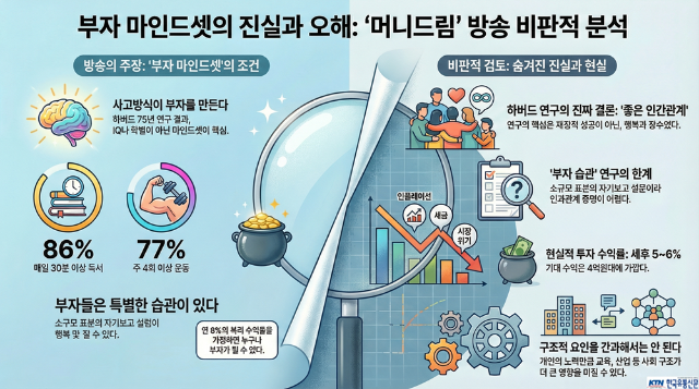 최근 인기 경제 콘텐츠 '머니드림' 방송에서 하버드대학교의 75년간 인생 추적 연구를 인용하며 "IQ나 명문대 출신이 아닌 사고방식이 60대 부자의 핵심"이라고 소개했다. 해당 방송은 장기적 사고, 절제된 소비, 건강 관리 등 부자들의 습관을 강조하며 큰 반향을 일으켰다.
