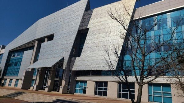 Explain the picture: A panoramic view of the Gyeongbuk Creative Economy Innovation Center located in Sinpyeong-dong, Gumi-si (former main building of Geumo National University of Technology)